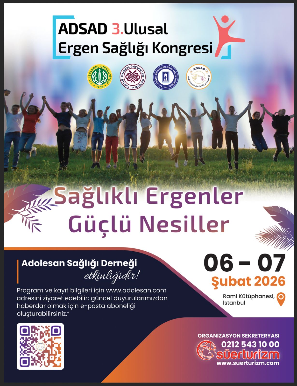 Bu bakış açısıyla; İstanbul Üniversitesi İstanbul Tıp Fakültesi, İstanbul Üniversitesi Çocuk Sağlığı Enstitüsü ve Adolesan Sağlığı Derneği (ADSAD) iş birliği ile düzenlenecek olan III. Ulusal Adolesan Sağlığı Kongresi, 06–07 Şubat 2026 tarihlerinde İstanbul’da, tarihi Rami Kütüphanesi’nde gerçekleştirilecektir.